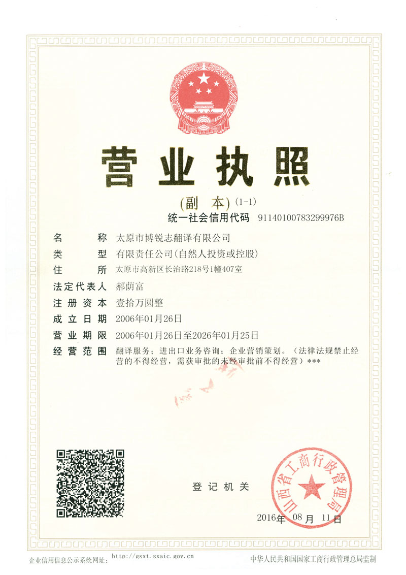 太原市博銳志翻譯有限公司留英市場(chǎng)營(yíng)銷(xiāo)碩士郝宇云先生于2006年創(chuàng)辦,公司名稱(chēng)由英文單詞Bridge音譯而來(lái),正如其意,太原市博銳志公司就是要以專(zhuān)業(yè)的知識(shí)、誠(chéng)心誠(chéng)意的服務(wù)態(tài)度為客戶(hù)打造一座跨越語(yǔ)言障礙的橋梁,并提供切實(shí)可行的解決方案。博銳志翻譯公司服務(wù)內(nèi)容涵蓋各類(lèi)證件翻譯、各種外語(yǔ)文書(shū)翻譯、網(wǎng)站頁(yè)面翻譯、市場(chǎng)調(diào)研、海外企業(yè)信用調(diào)查、企業(yè)市場(chǎng)營(yíng)銷(xiāo)戰(zhàn)略咨詢(xún)、市場(chǎng)營(yíng)銷(xiāo)項(xiàng)目策劃等。為回報(bào)社會(huì),由股東出資10000元人民幣創(chuàng)立蔭富助學(xué)基金,并將公司年收入的1%作為此基金的補(bǔ)充來(lái)幫助那些學(xué)習(xí)****但家境貧困的學(xué)生。
